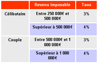A ces tranches, s'ajoutent également la contribution sur les hauts revenus dès l'imposition des revenus de 2011, avec application d'un système de quotient.